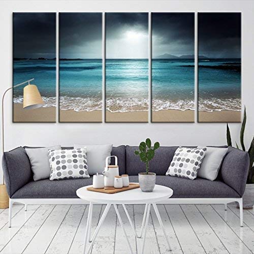 Amazon Com Modern Large 5 Panel Dark Green Sea And Ocean Beach Living Room Beach Wall Decor
