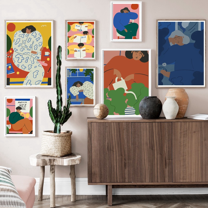 Abstract Figure Matisse Wall Art Canvas Painting Nordic Canvas Living Room Vintage Wall Decor shopee.co.id